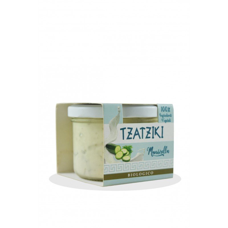 Cremosa di mandorla* 48% (acqua, farina di mandorla pelata degrassata*, olio di girasole*, olio extra vergine di oliva*, salgemma), Mandolat®* 26% (acqua, farina di mandorla pelata degrassata* 6%), cetriolo* 11%, olio di girasole*, succo di limone*, olio extra vergine di oliva*, inulina d'agave*, aceto di mele*, salgemma, aglio* in polvere, aneto* 1%. *AGRICOLTURA BIOLOGICA