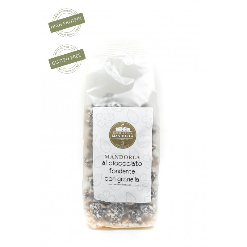 Mandorle di Toritto al Cioccolato Fondente con granella - Busta 200g
