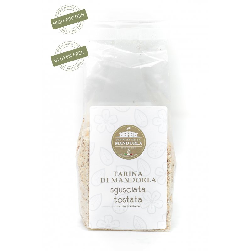 Farina di Mandorla di Toritto biologica sgusciata e tostata, da cultivar Filippo Cea predominante con altre cultivar autoctone.