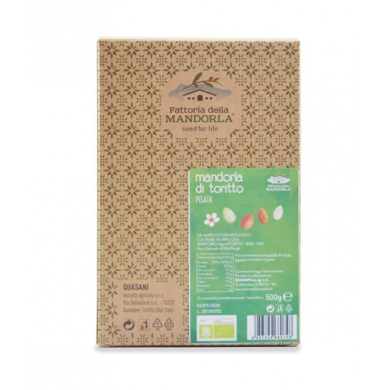 Le mandorle pelate bio della nostra Fattoria sono ottenute con metodi artigianali, pelate e selezionate a mano una ad una, per darti solo il meglio della nostra produzione.